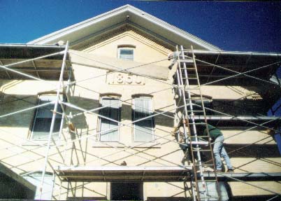 its aluminum and homasote siding, made repairs to rotten framing and