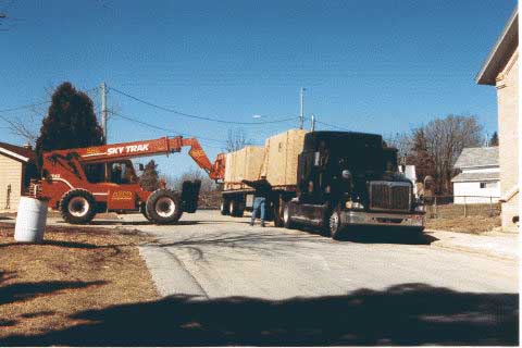 SkyTrak loader. AZCO Inc. donated their crane service. They are