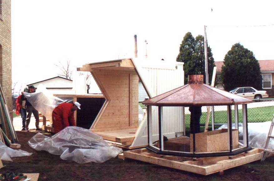 the tower components are being uncrated.