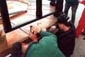 The carpenters rotate the platform into position.